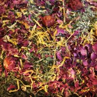 Peaceful Petals~ Organic mint, lemon balm, oat tops, raspberry leaf, orange peel with Lavender, Rose and Calendula petals. A delightful blend filled with vitality, great for everyday use, digestion and relaxation. Caffein Free